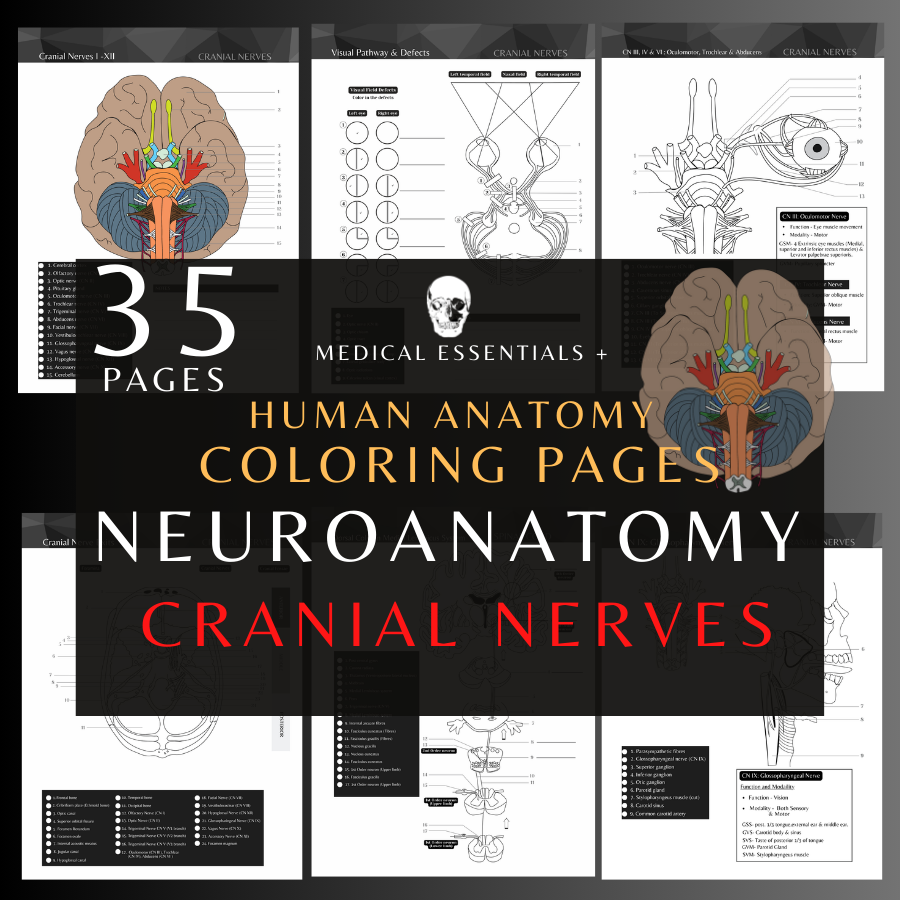 NEUROANATOMY: CRANIAL NERVES COLORING PAGES STUDY GUIDE