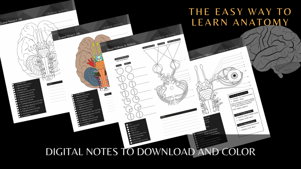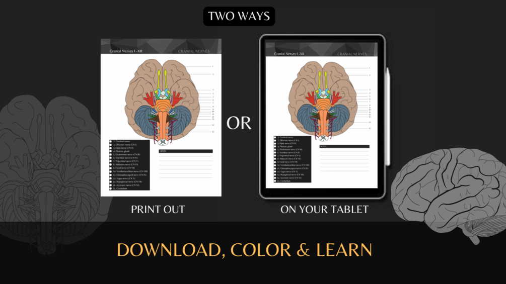 This Brain (Cerebrum) Anatomy PDF Study Guide is a great way to learn about the anatomy of the cranial nerves and the important function it plays in the nervous system. These printable Cranial nerves anatomy coloring worksheet can be easily downloaded after purchase and printed out right at home! This document can also be viewed and used as a study guide on a tablet or phone.